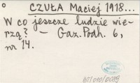 CZUŁA Maciej 1918... W co jeszcze ludzie wierzą?