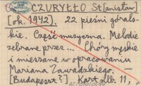 CZURYŁŁO St[anisław] [ok. 1942] 22 pieśni góralskie. Część muzyczna. Melodie zebrane przez... Chóry męskie u mieszane w opracowaniu Mariana Zawadzkiego.