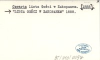 Czwarta lista Gości w Zakopanem. [1888]