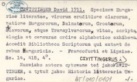 CZWITTINGER David 1711 Specimen Hungariae literatae, virorum eruditione clarorum, natione Hungarorum, Dalmatorum, Croatorum, Sclavorum atque Transylvanorum vitas, scripta, elogia et censuras ordine alphabetico exhibens. Accedit Bibliotheca Scriptorum qui extant de rebus Hungaricis.