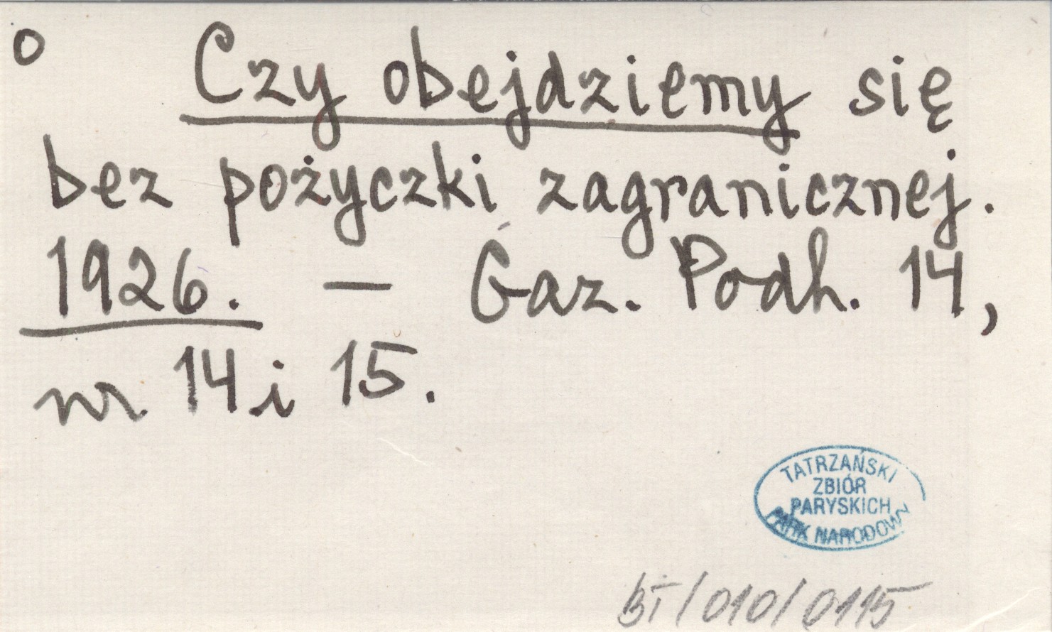 Czy obejdziemy się bez pożyczki zagranicznej. 1926