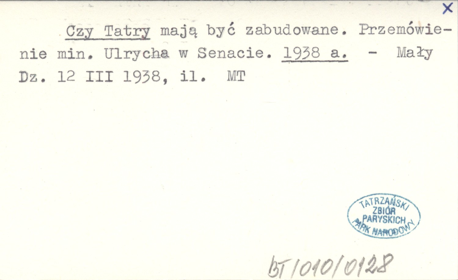 Czy Tatry mają być zabudowane. Przemówienie min. Ulrycha w Senacie. 1938 a