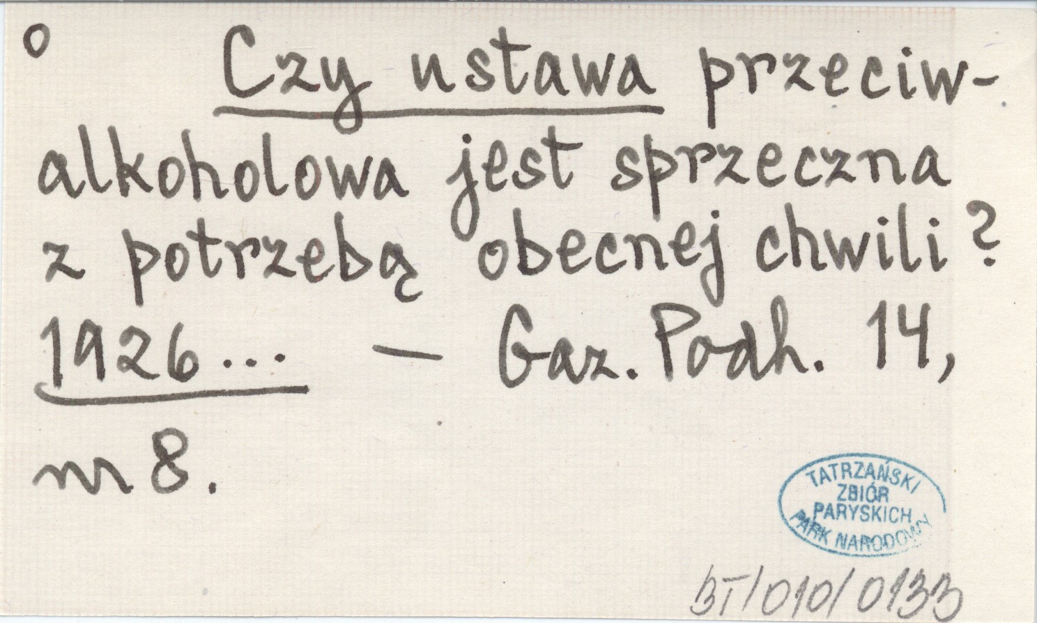 Czy ustawa przeciwalkoholowa jest sprzeczna z potrzebą obecnej chwili? 1926...