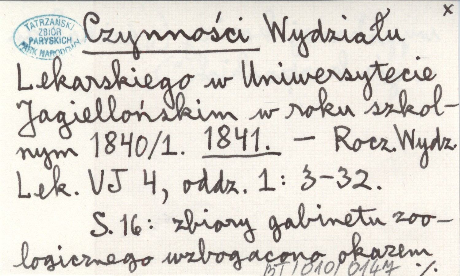 Czynności Wydziału Lekarskiego w Uniwersytecie Jagiellońskim w roku szkolnym 1840/1. 1841