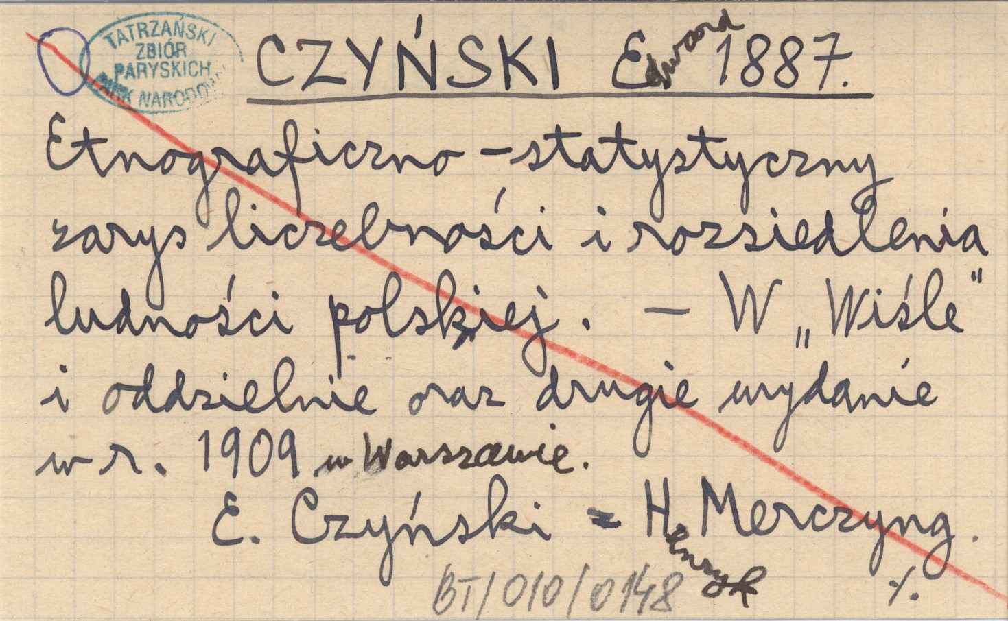 Henryk Merczyng CZYŃSKI Edward 1887 Etnograficzno-statystyczny zarys liczebności i rozsiedlenia ludności polskiej.