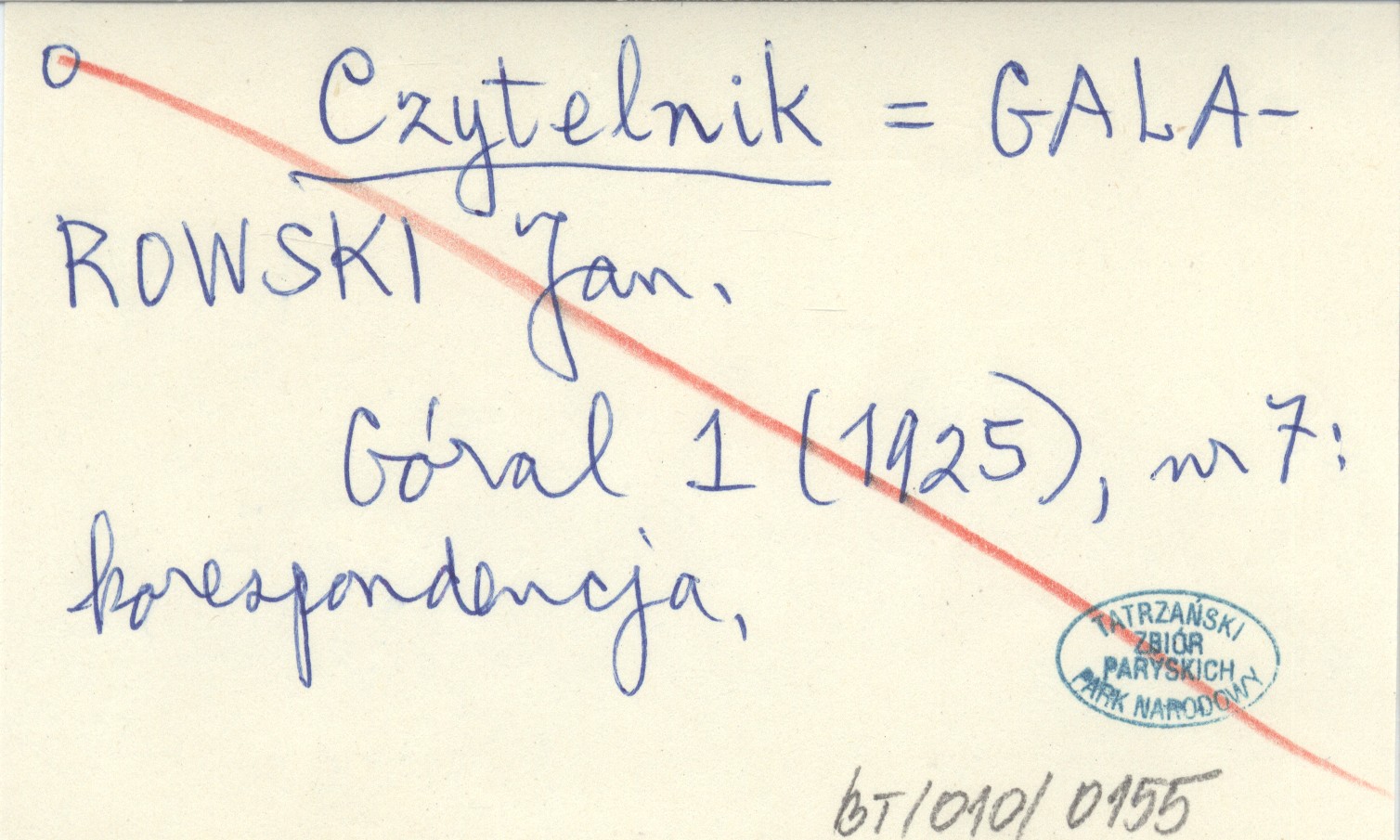Czytelnik GALAROWSKI Jan Góral 1 (1925), nr 7. Korespondencja.