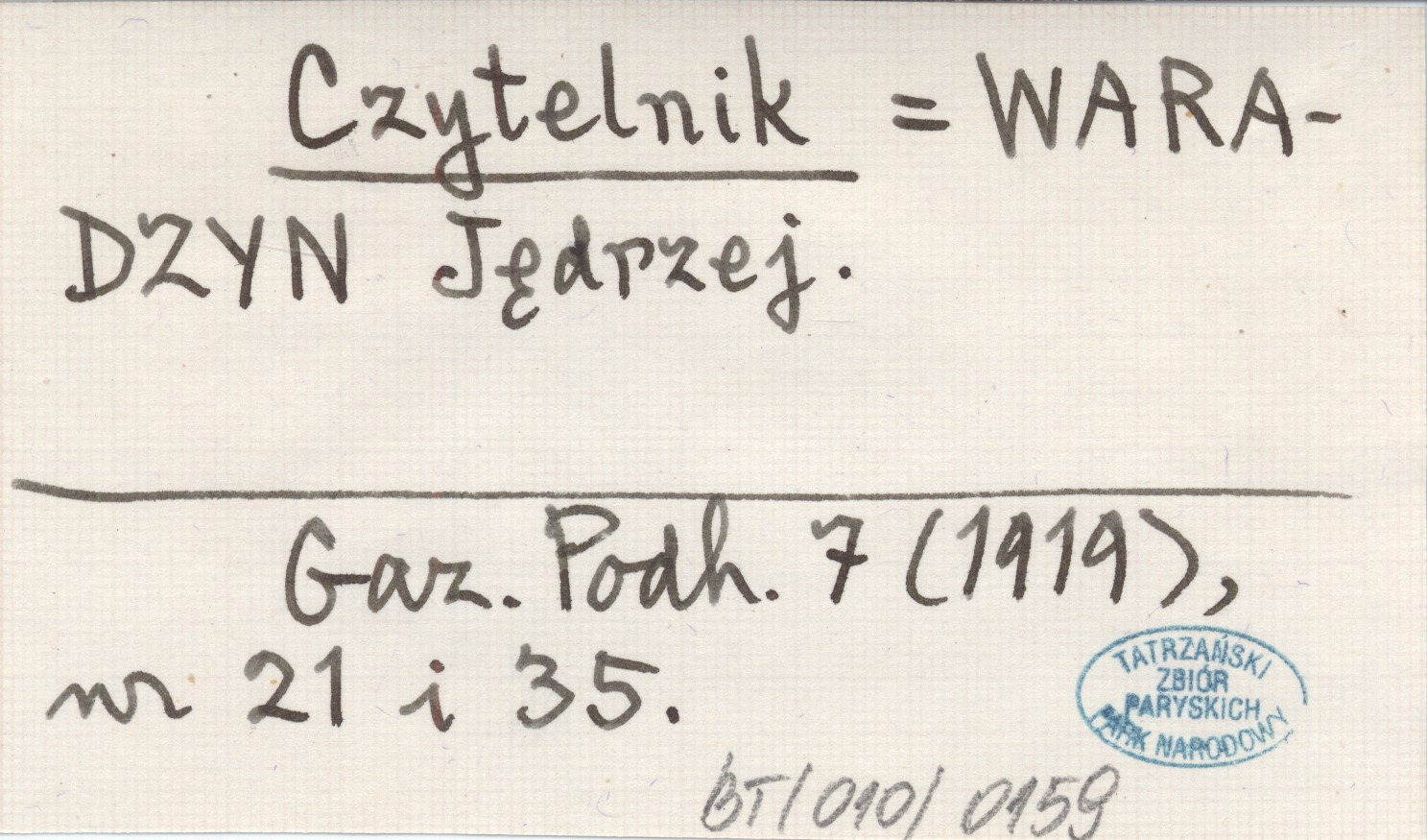 Czytelnik WARADZYN Jędrzej Gazeta Podhalańska 7 (1919), nr 21, 35.