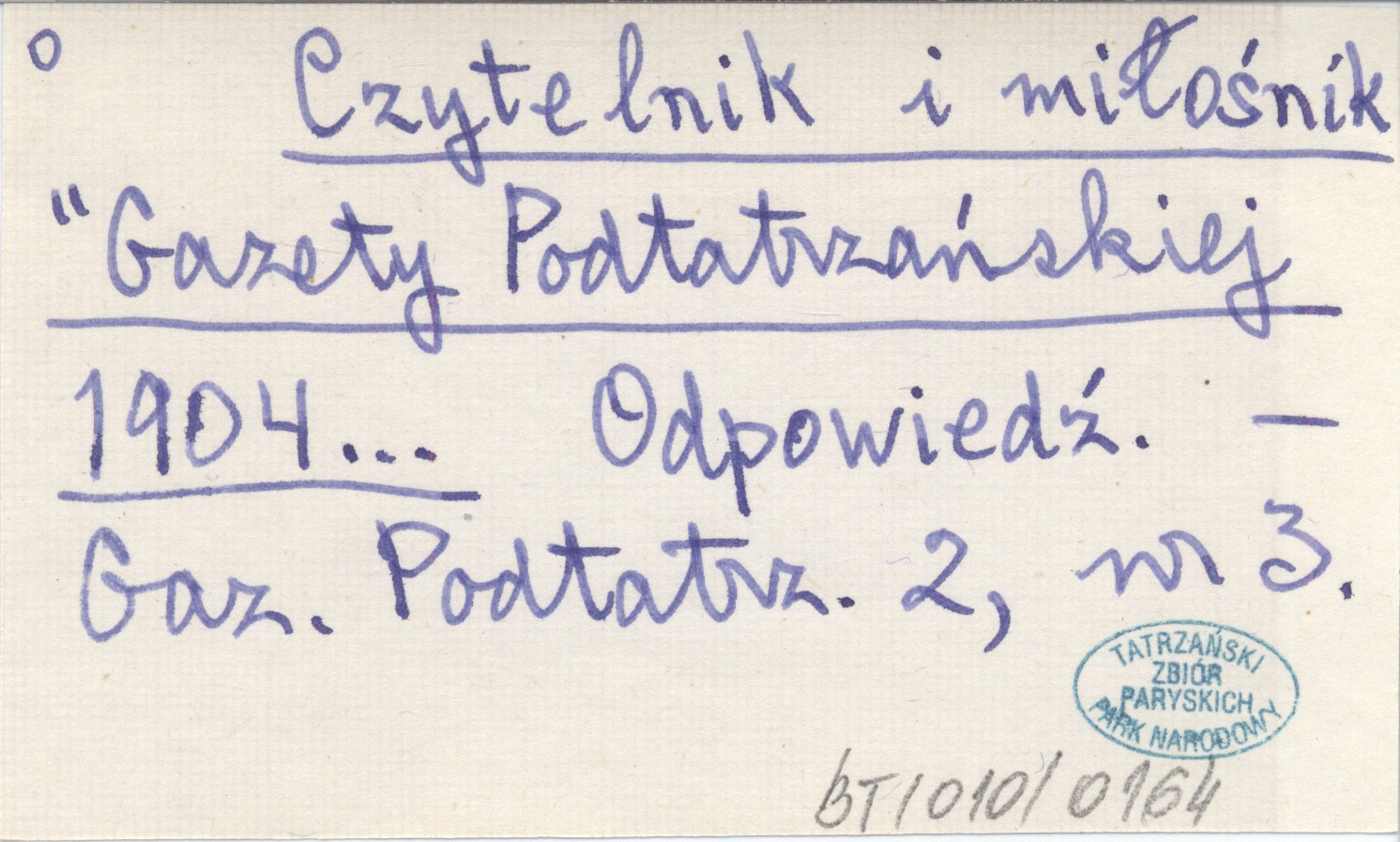 Czytelnik i miłośnik "Gazety Podtatrzańskiej" 1904... Odpowiedź.