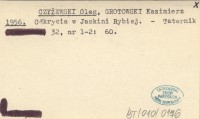 CZYŻEWSKI Oleg GROTOWSKI, Kazimierz. ; 1956 Odkrycia w Jaskini Rybiej.