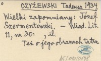 CZYŻEWSKI Tadeusz 1934 Wielki zapomniany: Józef Szermentowski.