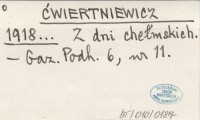ĆWIERTNIEWICZ 1918... Z dni chełmskich.