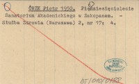 ĆWIK Piotr 1950 Pięćdziesięciolecie Sanatorium Akademickiego w Zakopanem.