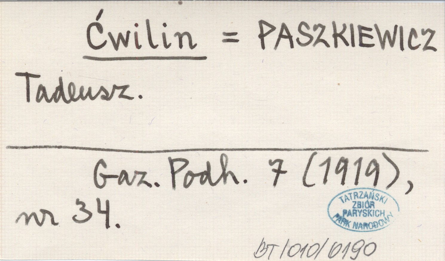 Ćwilin PASZKIEWICZ Tadeusz Gazeta Podhalańska 7 (1919), nr 34.