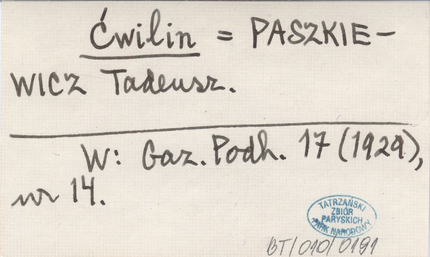 Ćwilin PASZKIEWICZ Tadeusz Gazeta Podhalańska 17 (1929), nr 14.