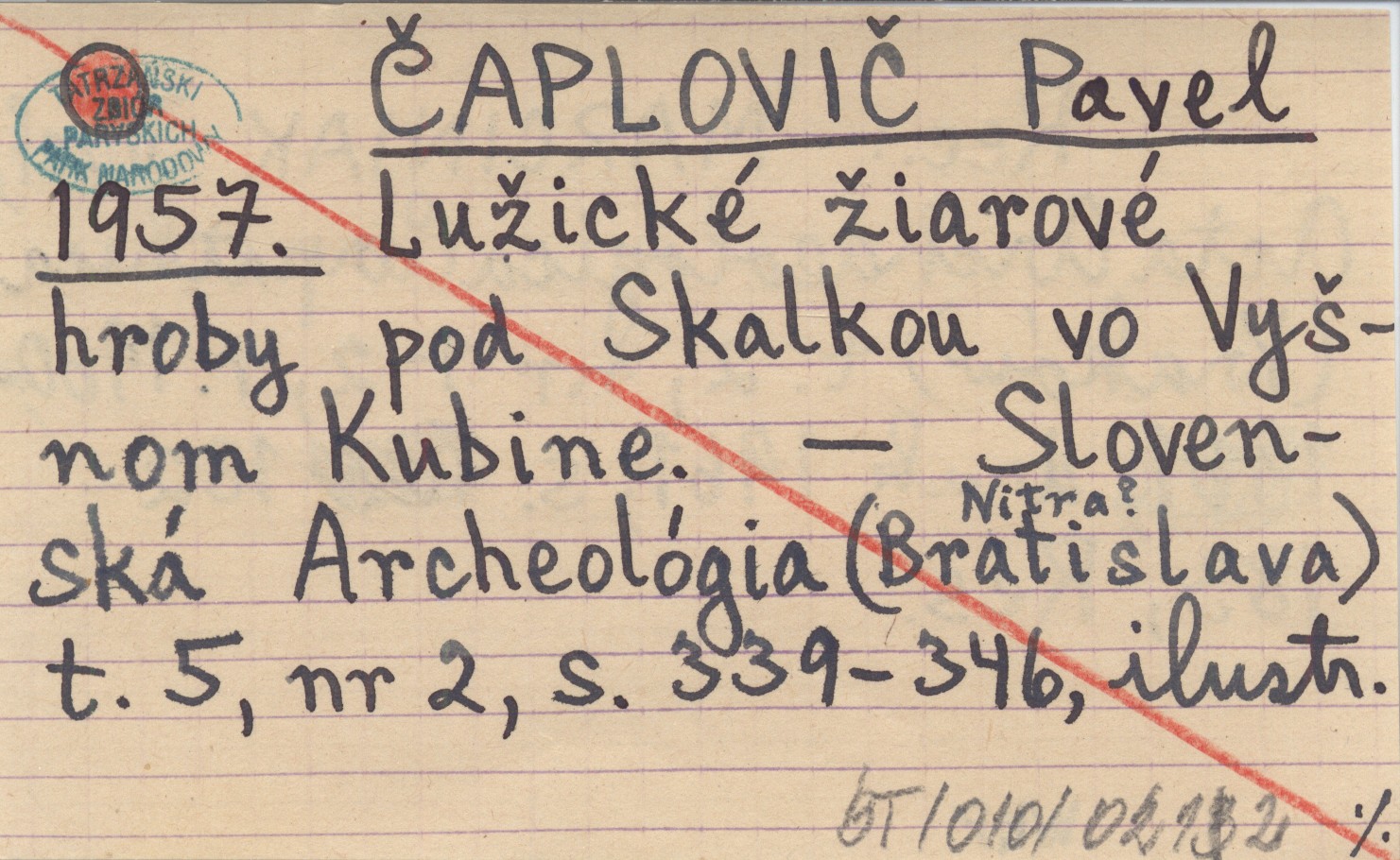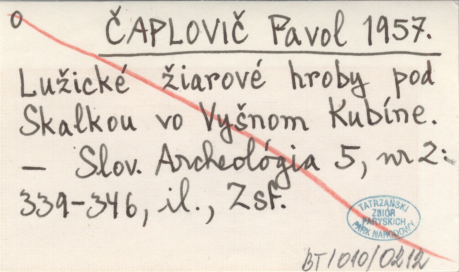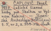 ČAPLOVIČ Pavol 1957 Lužické žiarové hroby pod Skalkou vo Vyšnom Kubíne.