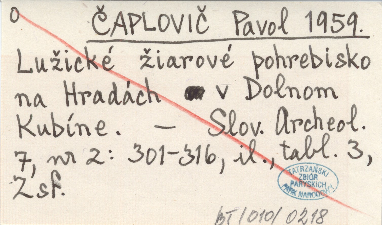 ČAPLOVIČ Pavol 1959 Lužické žiarové pohrebisko na Hradách v Dolnom Kubíne.