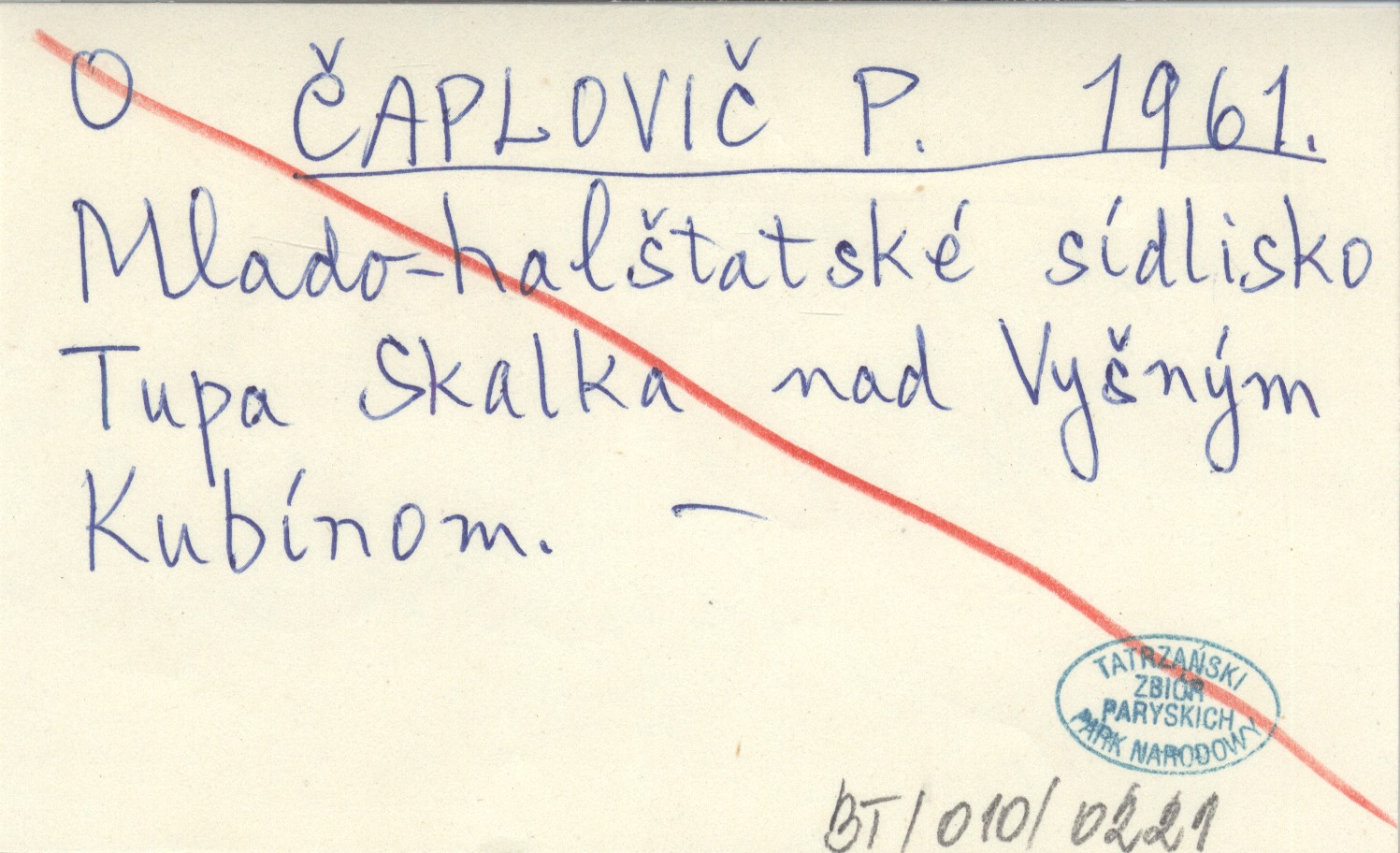ČAPLOVIČ P. 1961 Mlado-halštatské sídlisko Tupa Skalka nad Vyšným Kubínom.