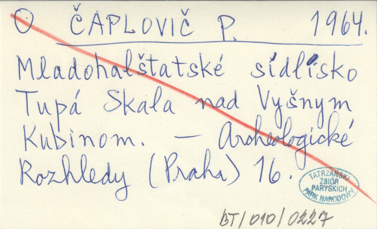 ČAPLOVIČ P. 1964 Mladohalštatské sídlisko Tupá Skala nad Vyšnym Kubinom.