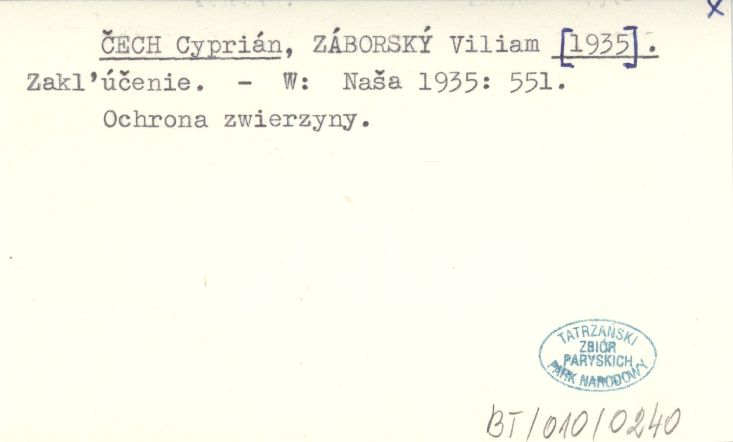 ČECH Cyprián ZÁBORSKÝ, Viliam. ; [1935] Zakľúčenie.