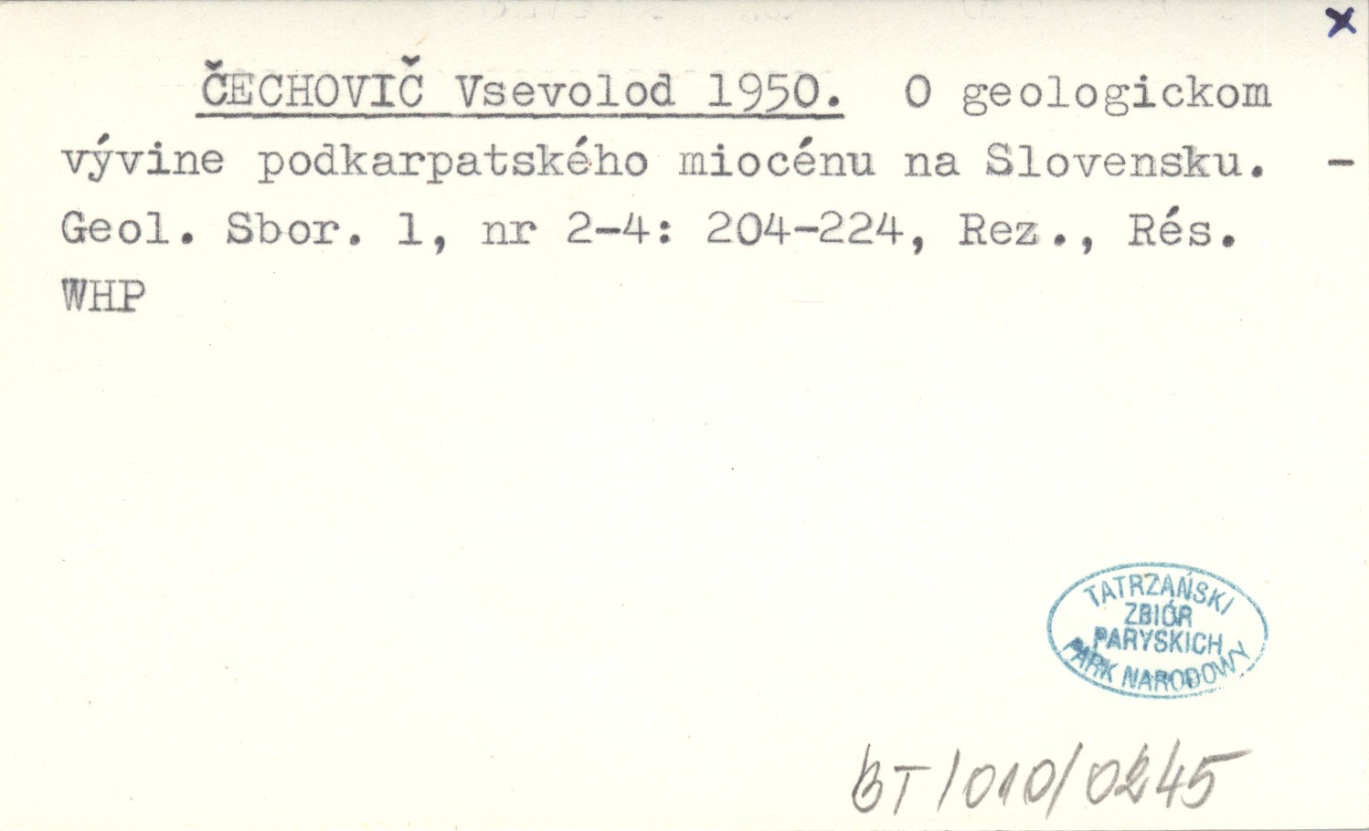 ČECHOVIČ Vsevolod 1950 O geologickom vývine podkarpatského miocénu na Slovensku.
