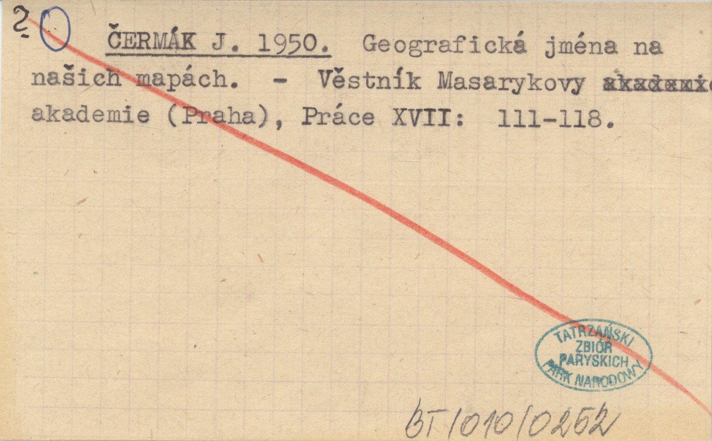 ČERMÁK J. 1950 Geografická jména na našich mapách,