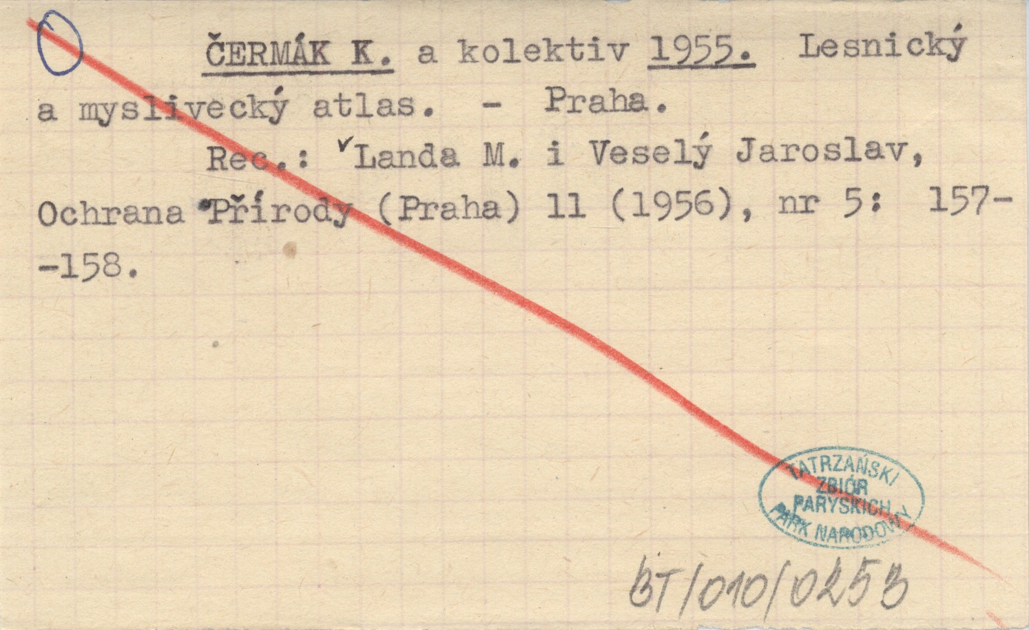 ÈERMÁK K. a kolektiv. ; 1955 Lesnickę a mysliveckę atlas.