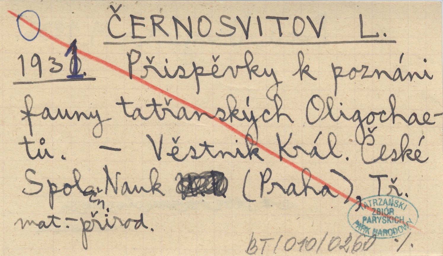 ČERNOSVITOV L. 1931 Přispěvky k poznáni fauny tatřanských Oligochaetů.