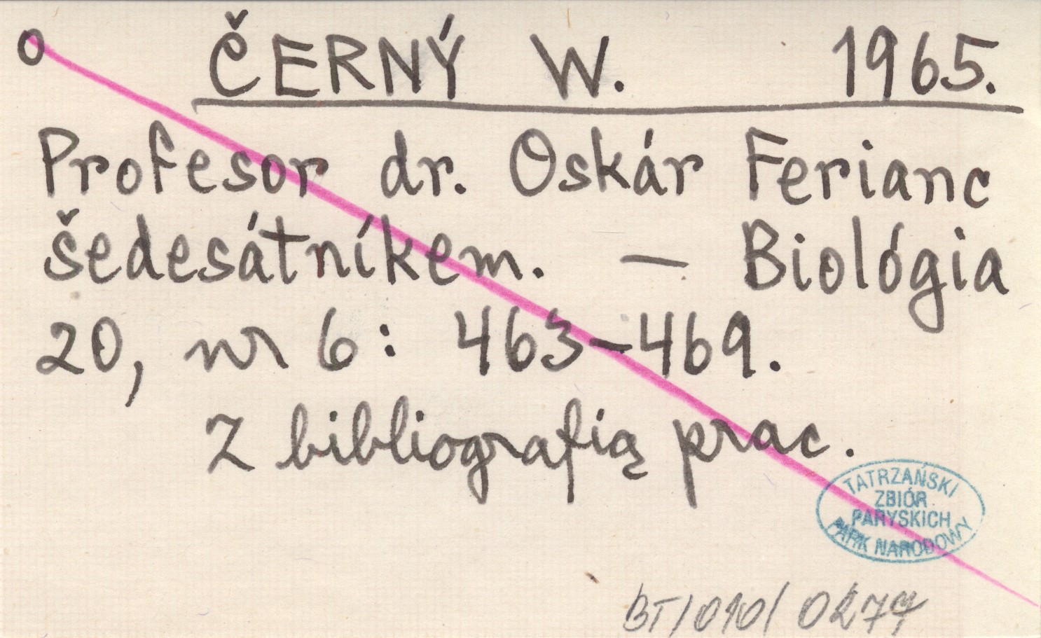 ČERNÝ W. 1965 Profesor dr. Oskár Ferianc šedesátníkem.