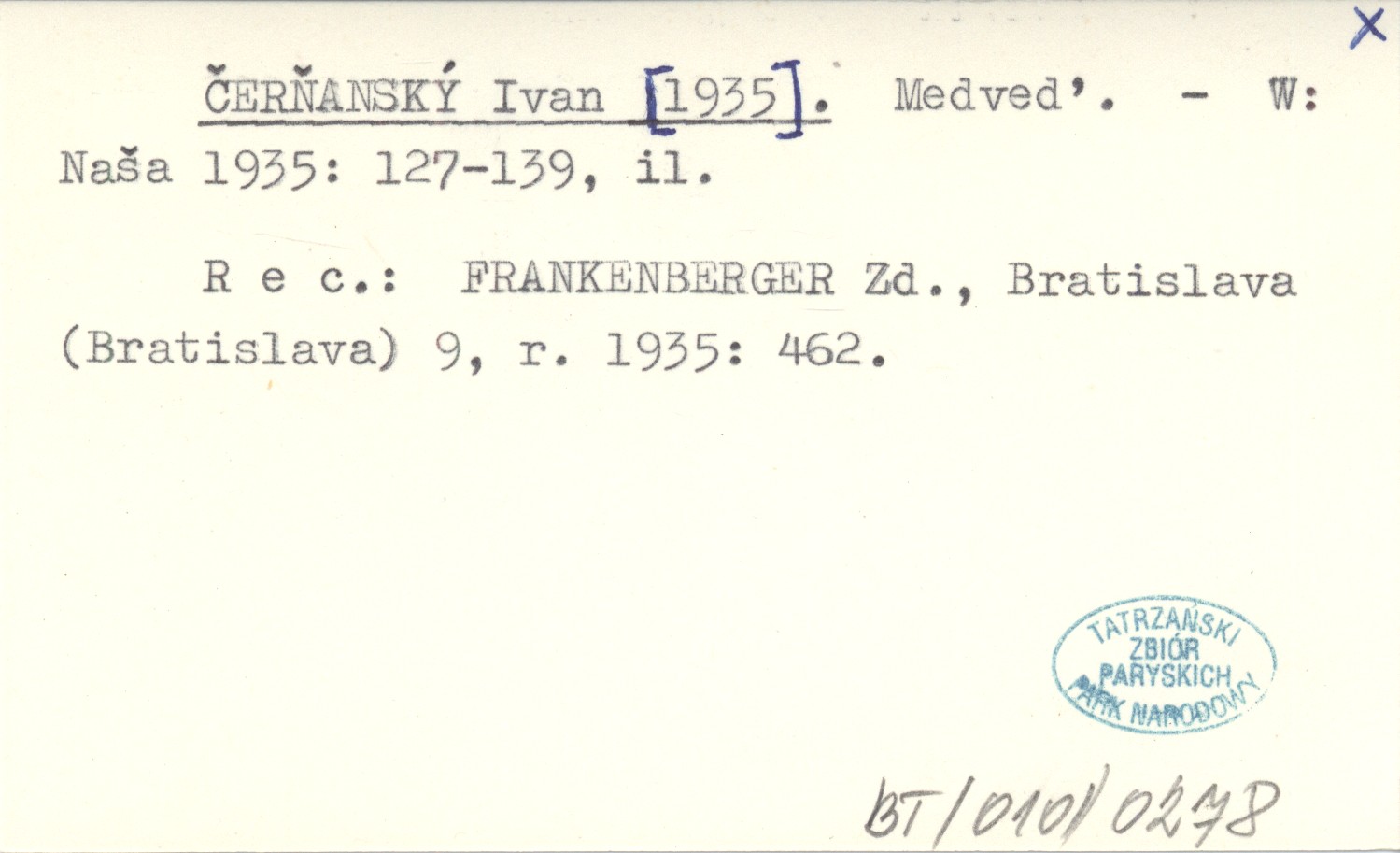 Naša, 1935: 127-139, il. REC: FRANKENBERGER Zd., Bratislava (Bratislava) 9, r. 1935: 462.