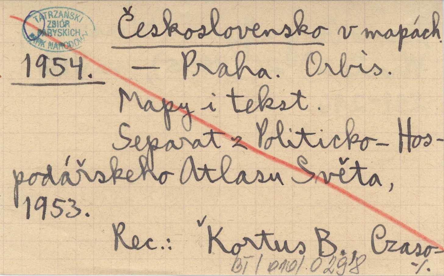 Orbis Praha , Mapy i tekst. Separat [przedruk] z Politicko-Hospodářskeho Atlasu Světa, 1953. REC: Kortus B., Czasopismo Geograficzne (Warszawa, Wrocław) 26 (1955), nr 3: 291-296.