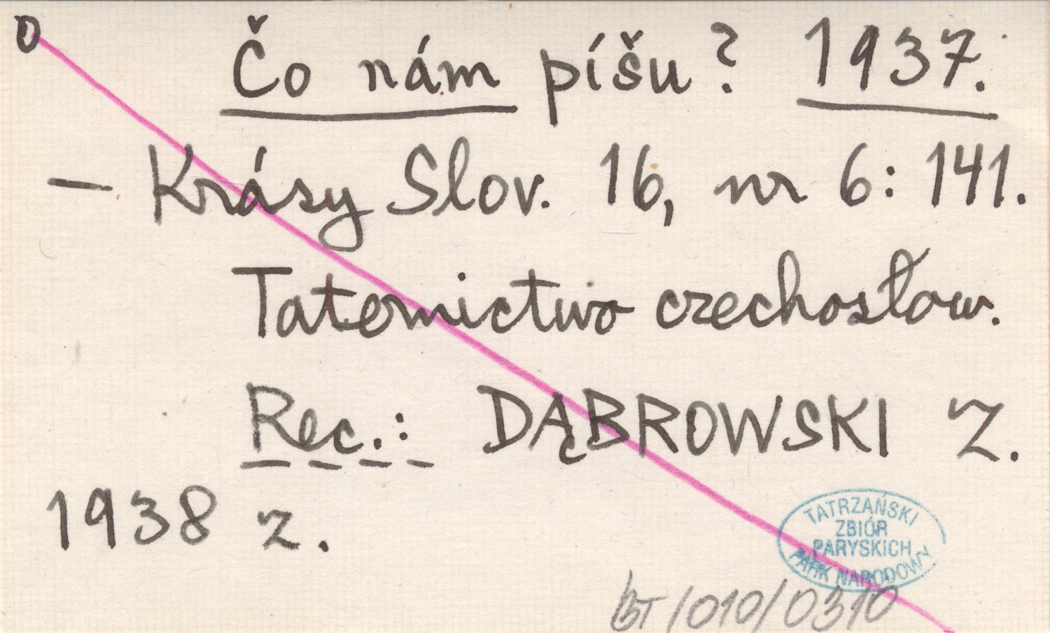 Krásy Slovenska, 16, nr 6: 141. Taternictwo czechosłowackie. REC: DĄBROWSKI Z. 1938 z.