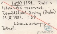 (čtk) 1959 Zvěř v tatranské rezervaci.