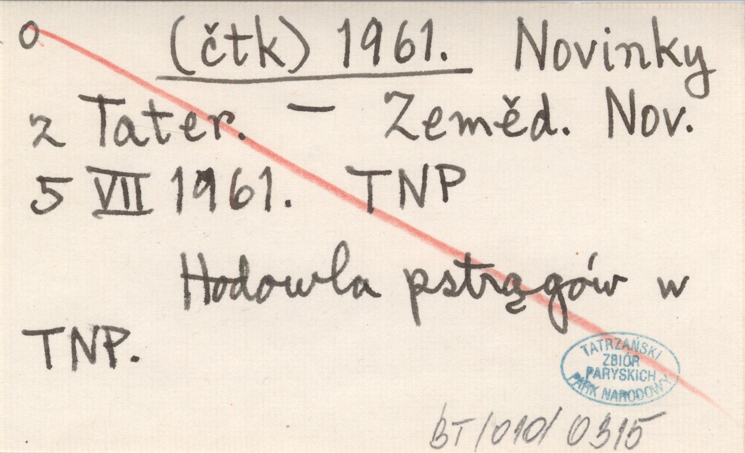 Zemědělské Noviny, 5 VII 1961. Hodowla pstrągów w TNP.