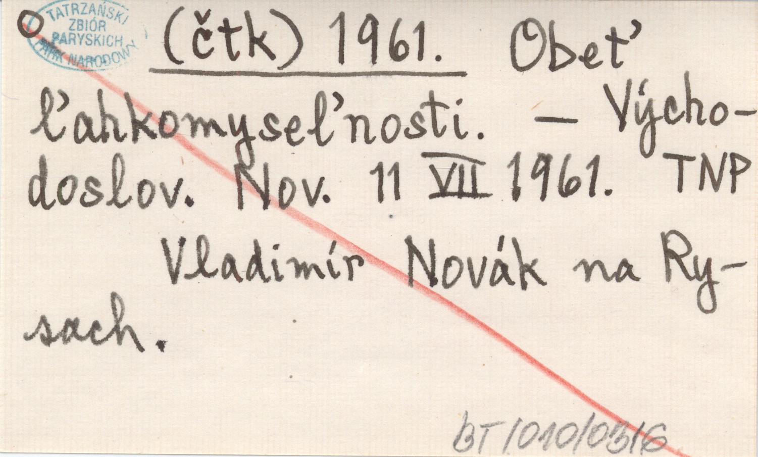 Vęchodoslovenské Noviny, 11 VII 1961. Vladimír Novák na Rysach.