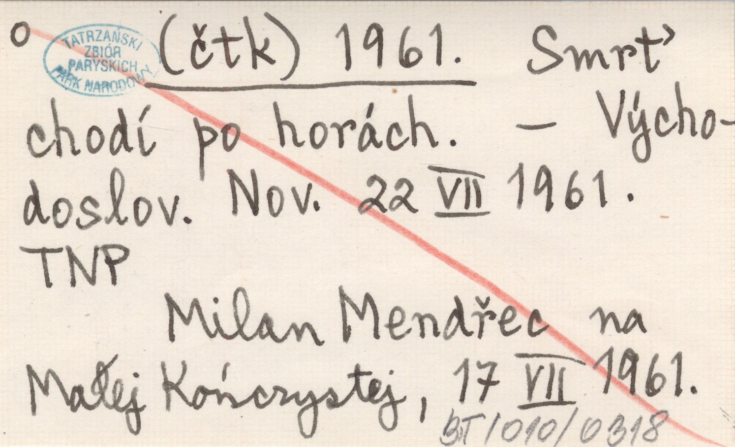 Východoslovenské Noviny, 22 VII 1961. Milan Mendřec na Małej Kończystej, 17 VII 1961.