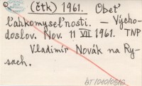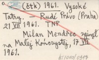 (čtk) 1961 Daląí oběti Vysokých Tater.