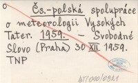 Čs.-polská spolupráce o meteorologii Vysokých Tater. 1959