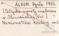 ÁLDOR Gyula 1903 [Celtyckie monety znalezione w Słowiańskiej Wsi.]