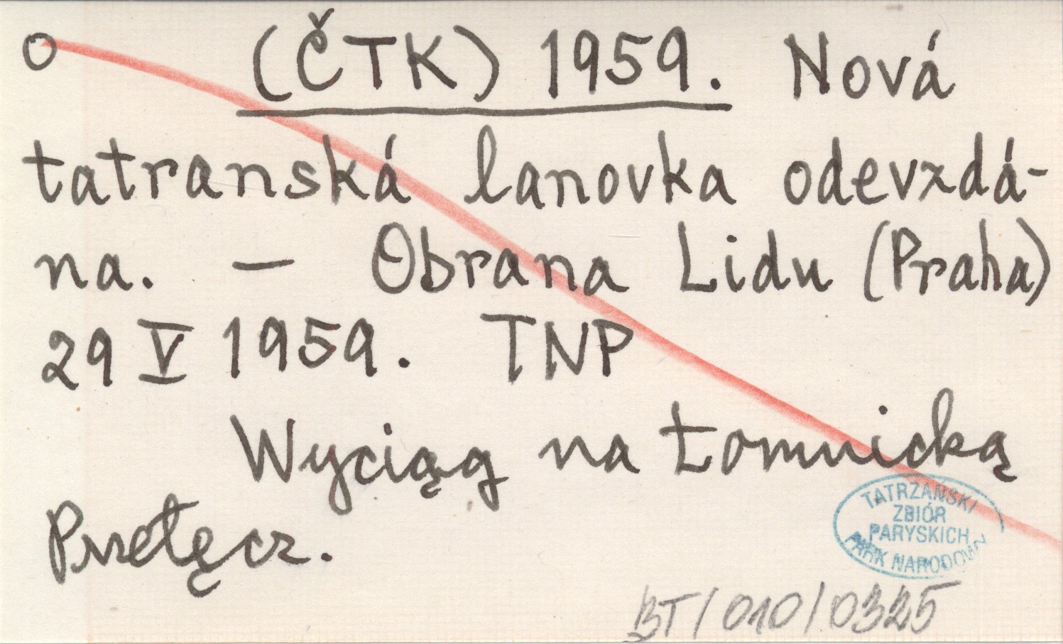Obrana Lidu (Praha) , 29 V 1959. Wyciąg na Łomnicką Przełęcz.