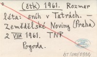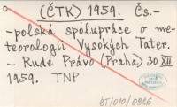 (ČTK) 1959 Čs.-polská spolupráce o meteorologii Vysokých Tater.