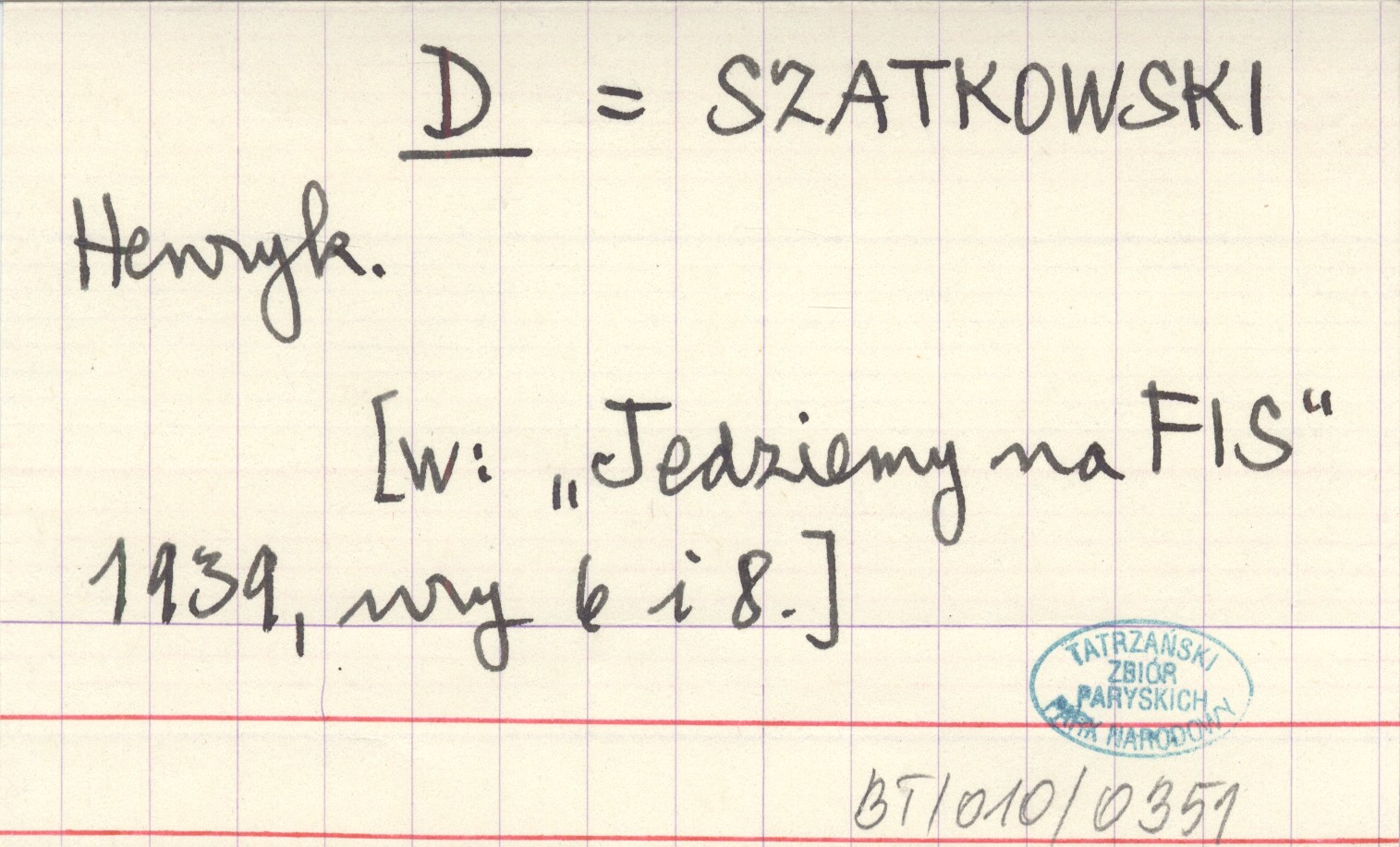 D SZATKOWSKI Henryk ["Jedziemy na FIS" 1939, nr 6, 8].