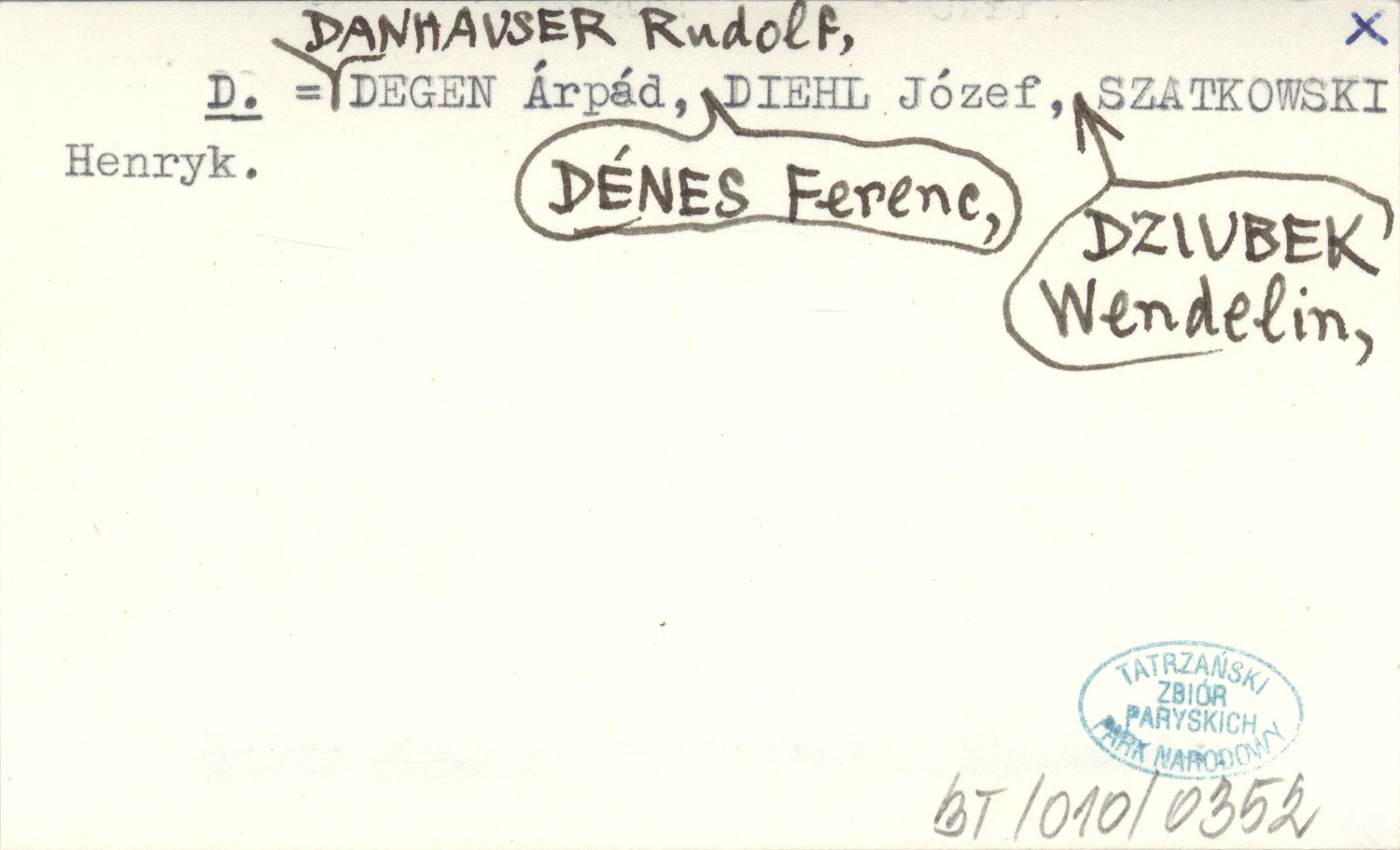 D DANHAUSER Rudolf DEGEN, Árpád. ; DÉNES, Ferenc. ; DIEHL, Józef. ; DZIUBEK, Wendelin. ; SZATKOWSKI, Henryk. ;