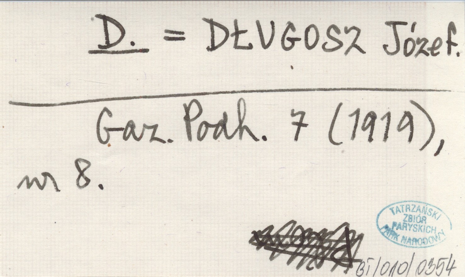 D. DŁUGOSZ Józef Gazeta Podhalańska 7 (1919), nr 8.