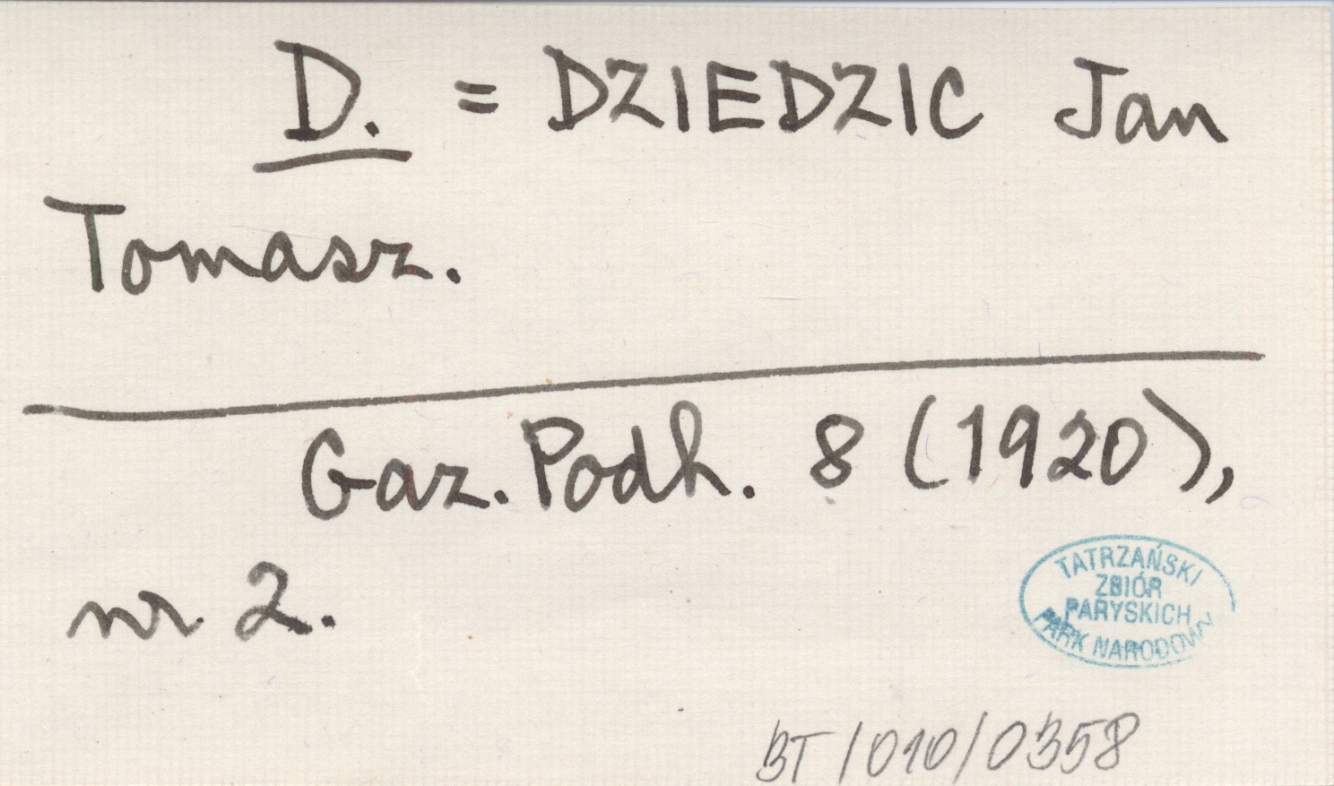 D. DZIEDZIC Jan Tomasz Gazeta Podhalańska 8 (1920), nr 2.