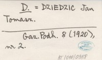 D. DZIEDZIC Jan Tomasz Gazeta Podhalańska 6 (1918), nr 38; 7 (1919), nr 14.