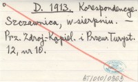 D. 1913 Korespondencye. Szczawnica, w sierpniu.
