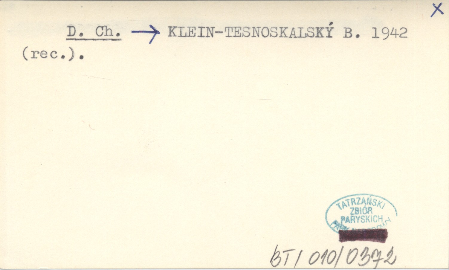 KLEIN-TESNOSKALSKÝ B. 1942 (rec.)