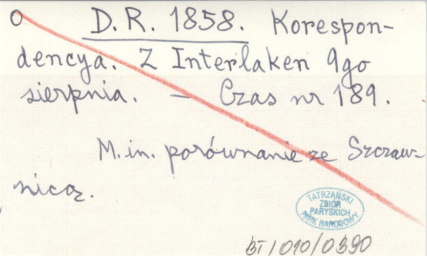 D. R. 1858 Korespondencya. Z Interlaken 9go sierpnia.