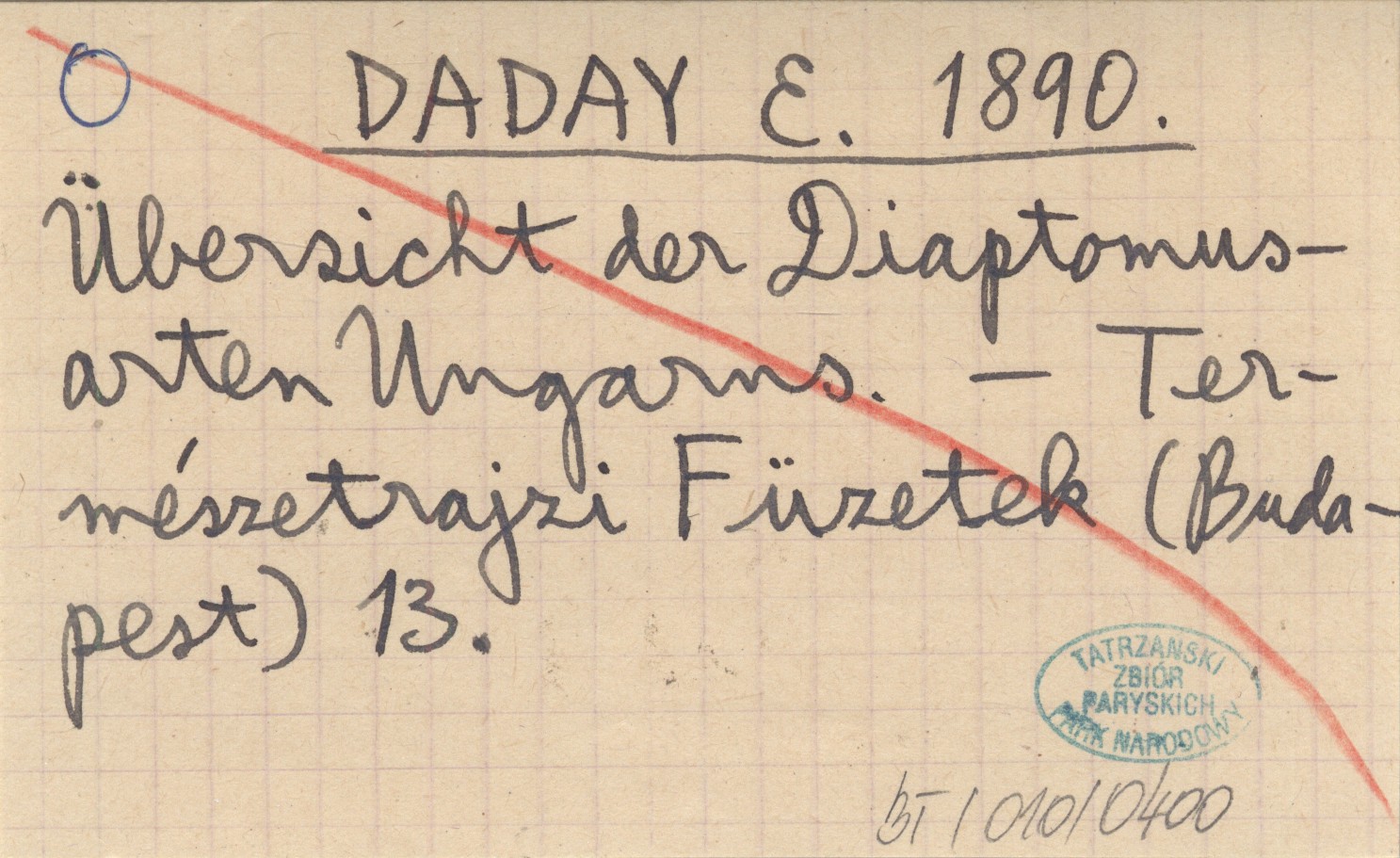 DADAY E. 1890 Übersicht der Diaptomusarten Ungarns.