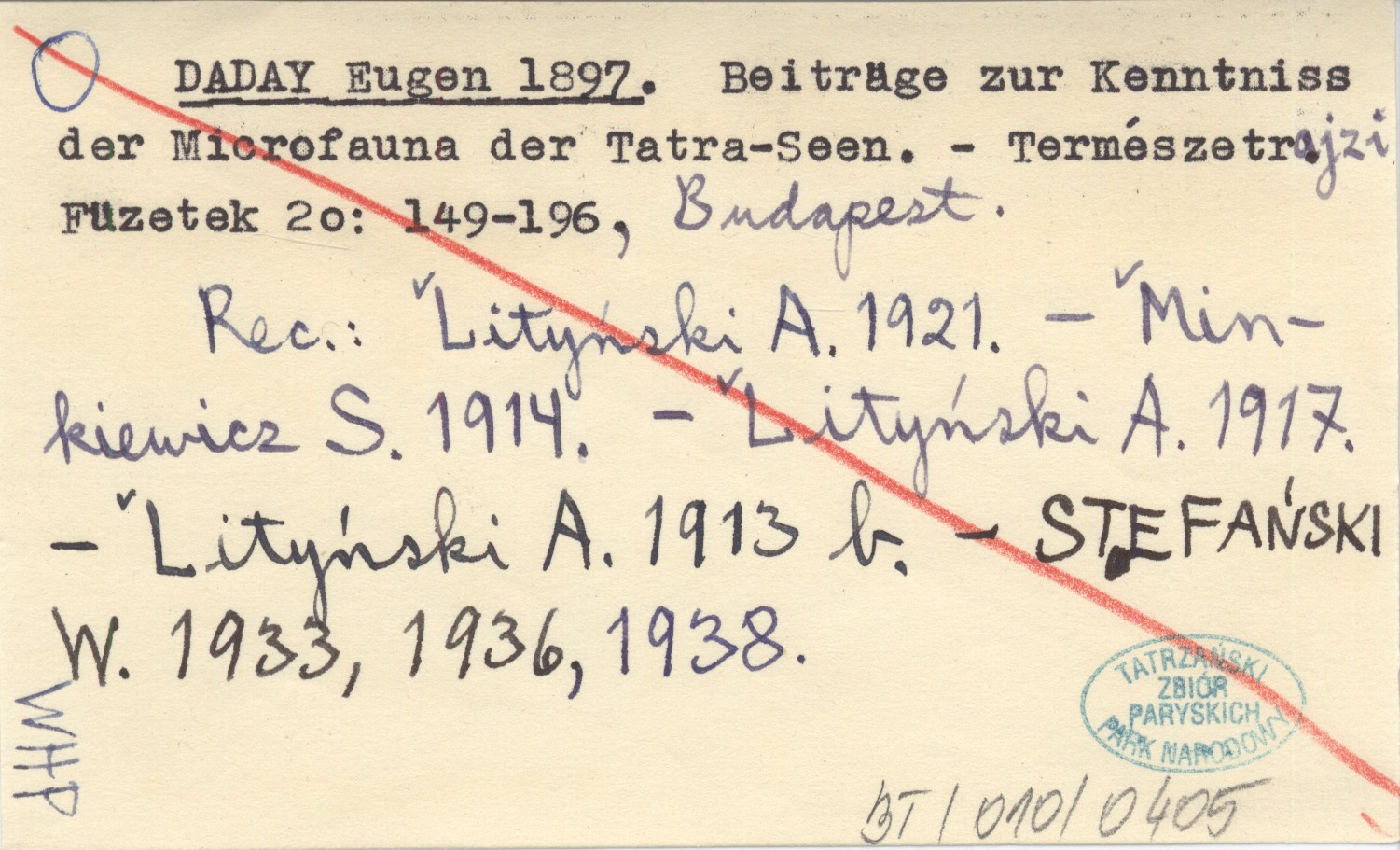 DADAY Eugen 1897 Beiträge zur Kenntniss der Microfauna der Tatra-Seen.